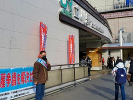 12月22日今年最後の錦糸町駅北口宣伝。他の団体から場所を譲って下さり、予定通り宣伝を行えました。毎回横断幕を食い入るように見る方、チラシを取りに来る方がとても多いですが、高校生を含む若い方々の関心が高かったです。愛媛から参加した争議団員も何人もの方から声をかけられ対話していました。
