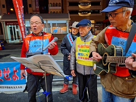 11月25日横浜駅宣伝。初冬を感じさせる寒さの中、沢山の方にご参加頂きました。最近若い人たちがビラを受け取る光景が多いです。合唱にも若い人たちが一緒に口ずさみ楽しんで下さる様子は嬉しいです。JRの助役と警備員が来ましたが、責任者にいなされ引き下がりました。