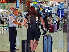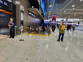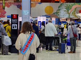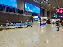 1月24日成田空港宣伝。今回もアジア系旅行者が圧倒的に多い出発ロビーで新ビラを配布。英語ビラの取りは相変わらずよかった。職場前では職場要求をアピールした横断幕が社員の関心を引いていた。地上職の方の受け取りもよかった。