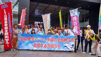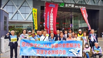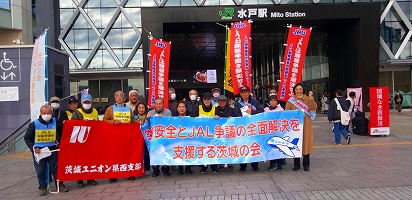 1月19日「空の安全とJAL争議の全面解決を支援する茨城の会」による水戸駅宣伝が行われました。パレスチナの自由と平和を願う団体の皆さん、核兵器禁止条約批准を願う新婦人の皆さんと、宣伝が重なりましたが、いずれもJAL争議を支援してくれており、新婦人からは、飛び入りで訴えもしていただきました。