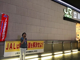 立川駅南口宣伝行動/主催:JAL三多摩共闘