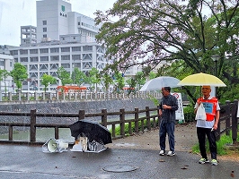 1月29日松山市堀之内公園でランチタイム宣伝。南国に霰が降り寒風吹く中キッチンカーも人出も少なく外国人のお遍路さんがエールを送ってくれました。伊豫豆比古命神社(いよずひこのみことじんじゃ)=お椿さんと親しまれているお祭りの時期が一番寒い。
