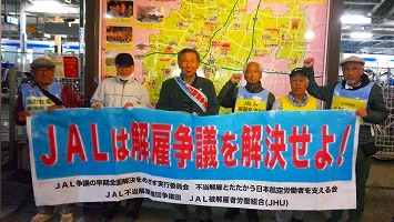 2月26日小倉、27日博多、28日福岡空港:福岡地区宣伝。JALが私たち「モノ言う労働者」を不当解雇し15年目。安全問題が止まらない。報道される度「またか」と震えを感じる。安全運航を守る為にも早期にこの解雇問題を解決し、何がこの状況を生んでいるのか、労働者、現場の声に真摯に耳を傾けるべき!