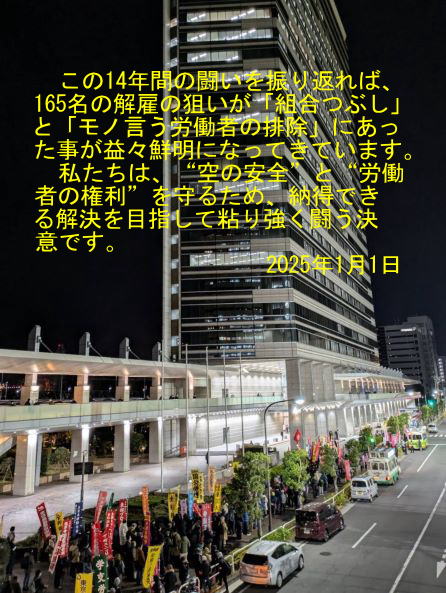 孤軍奮闘ではない。怒りに寄り添い雨の日も風の日も訴えを共にしてくださる支援者の皆様に感謝いたします。労働者の連帯パワーで15年の屈辱を跳ね返す!JAL経営は立派な人権方針を掲げている。今すぐ履行して不当解雇争議を解決へ!