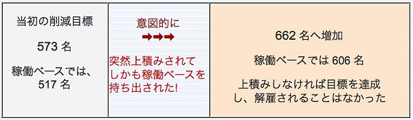 12 月 9 日(解雇予告日)時点において、更生計画上すでに人員削減目標は達成していましたが、会社は削減目標が達していないとして 165 名を解雇しました。しかも更生計画上の削減目標達成期日は、2011 年 3 月末であり、2010 年 12 月時 点で解雇する必要は全くありませんでした。